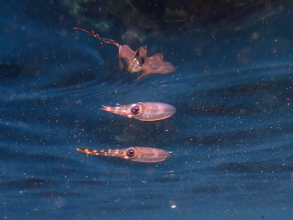 水面下で見れるアオリイカの子供