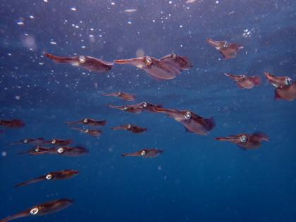 産まれたアオリイカが先行ブイの周辺でたむろっていました。
