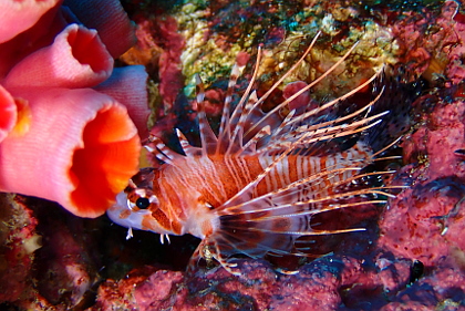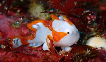 クエ穴のニシキフウライウオ。