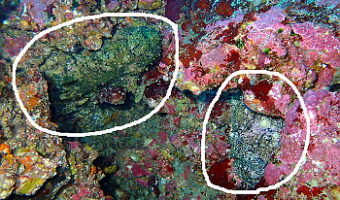 その内2匹は、1枚の画角に入る位くっついてて(分かりにくいので囲っちゃいました⤴)、このすぐ上に3匹目が潜んでました。