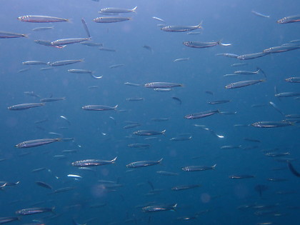 ウルメイワシでしょうか。浅場はイワシグルグルです!!