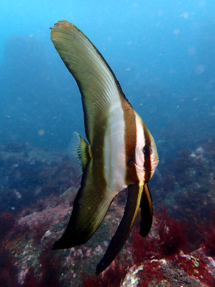 水面付近は、群れが多く、2本目には、ミカヅキツバメウオが出てきました。↓