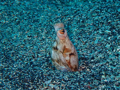 大抵はホタテウミヘビに擬態して砂地に刺さってます(笑)。ホタテウミヘビっぽく見えてます?